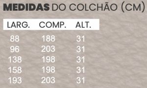 Sistema de molas ensacadas individualmente, que possibilita uma melhor adaptação corporal. Sua tecnologia de construção de mola com altura superior às convencionais e comprimidas para 15 cm garantem maior suporte e sustentação das espumas do colchão. Este sistema forma um colchão de alta performance, contribuindo para estabilizar os movimentos noturnos de uma pessoa para outra. Mola ensacada Wide, 180 molas/m2, aço 2.0mm, adequados à biotipos de até 120 kg.